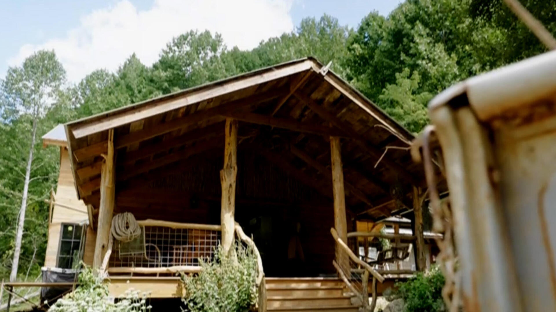 The items he retrieved from the woods were "headed to the landfill," but they have helped him build his dream house. Despite a history of home construction, he's never had the resources to fulfill his own creative vision — including Black Locust bark siding and portions of tree trunks that support his roof.