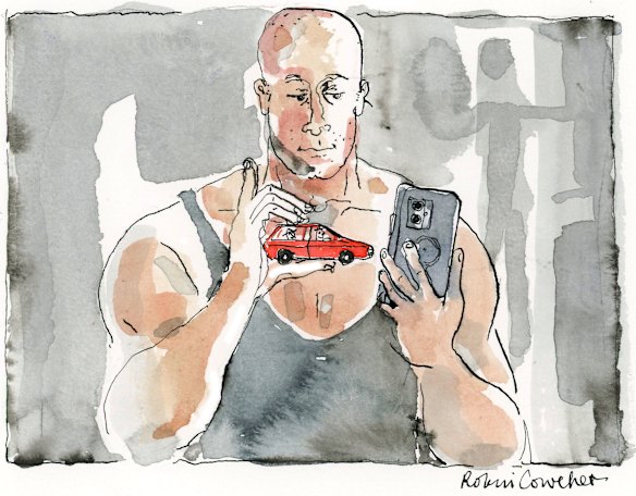 And this is where my prejudice against muscle hounds really took flight. We had crashed outside a gym, an outer-suburban tilt-slab bunker veneered with dark glass. On hearing the roar of the crash a dozen or so simulacrum Schwarzeneggers strode outside and began circumnavigating the wreck asking fatheaded questions and pocketing Wonderbra flyers. They were a welcome sight to us. These lads, these eager behemoths, would soon right our car. Except … they were not eager at all.