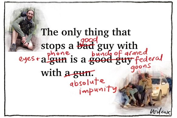 Jack Almond hasn’t quite got it right when he says the killing of Alex Pretti by ICE agents reflects a dystopian nightmare (Letters, January 27). Dystopian and nightmare suggest imagined worlds. Trump’s second term is brutal reality. Ross Duncan, Potts Point