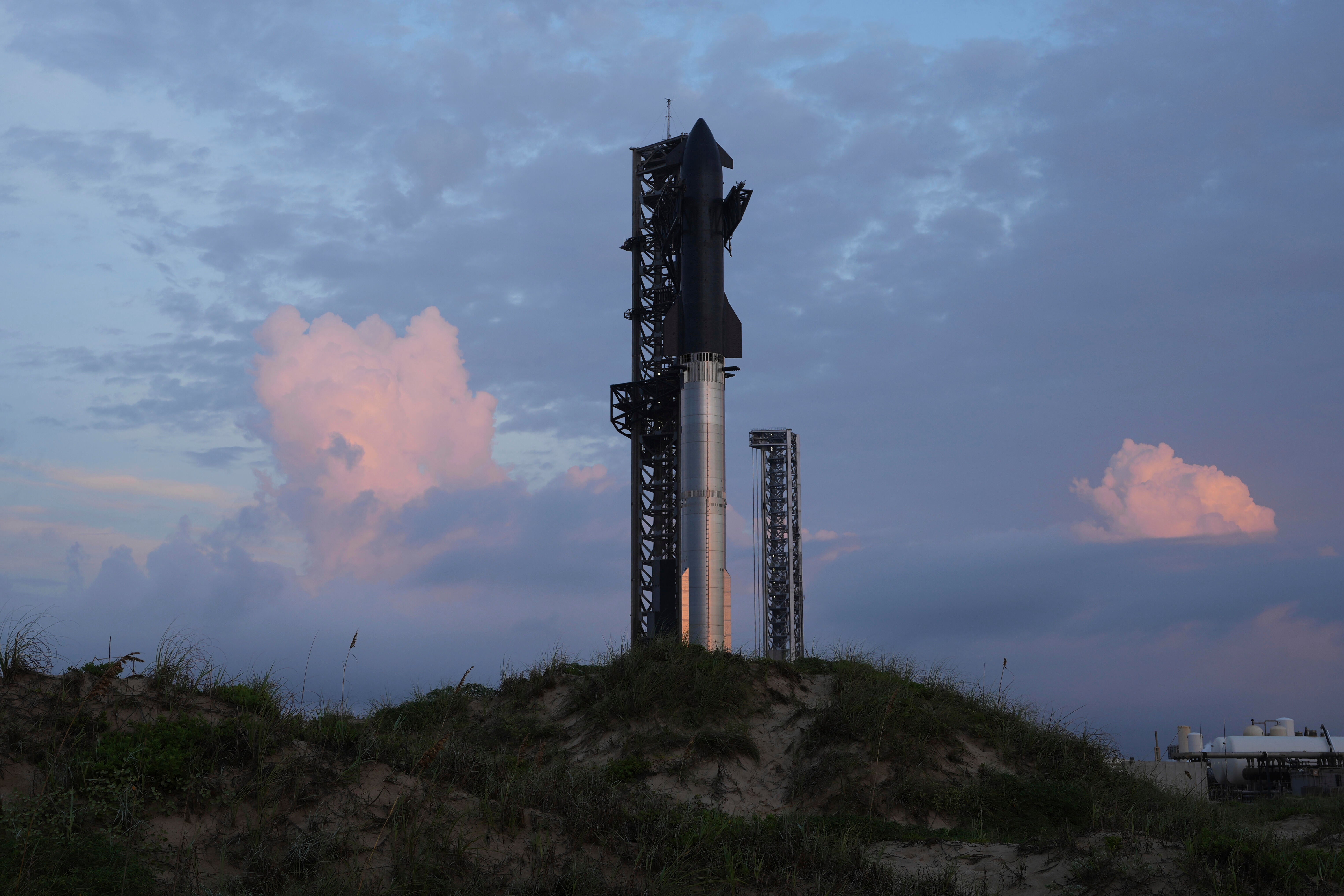 The Super Heavy booster's 33 methane-fueled Raptor engines roared to life at 7:30 p.m. ET, sending out a thundering exhaust plume as the 40-story-tall rocket climbed away from SpaceX's Starbase facility on the Texas Gulf Coast.