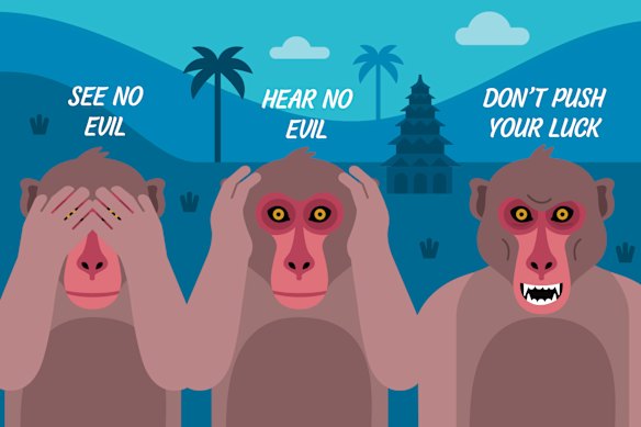 Coming from temperate Melbourne, where the most exciting animal I’ll ever see is a snake at the bottom of the garden (that’s quite exciting, actually), I’ll never get tired of seeing wild animals roam, especially when I’m in a different country. That’s why, on a family holiday in Malaysia, the temptation to get up close to the family of long-haired macaques we spot in the Penang Botanic Gardens is irresistible. But when the matriarch bares her teeth, hisses and moves to attack, well, my partner jumps backwards so fast and my children bolt in terror in ways I’ve never seen before.