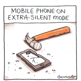 I gave up smokes when my kids were born, but I’ve never been able to give up the mobile phone because I’ve never had one. These days it seems like it’s just about the most distinctive badge I wear. At home when the kids were old enough to beseech me I’d say nup, the mobile phone is a lame companion. I was such an annoying dad. I’d also say to other parents, “you don’t let your children cross the main road on their own so how come you pop them on the school bus every day with an unsupervised pocket-rocket of violence, ridicule and porn? You may well be helicopter parents,” I’d say, “but in this instance you’re behaving more like drunkards.”