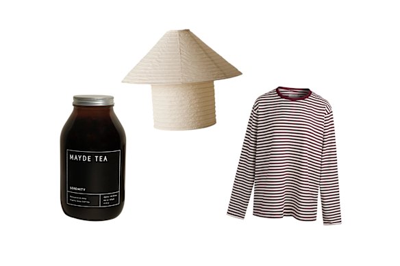Where to buy: Mayde Tea “Serenity” herbal loose tea, $20; McMullin x Assembly Label table lamp, $249; Resting “Dylan” longsleeve top, $90.