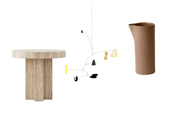Where to buy: Casa Blanco “Axel” side table, $1600; Marie Bernard “SP 01″ mobile, $3600; Jac + Jack x Mud carafe, $210.