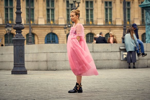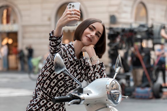Coincidentally, Hepburn’s iconic early morning scene will be re-enacted by modern style icon Lily Collins when she appears in a new film about the making of Breakfast at Tiffany’s. Not only does Collins bear an uncanny resemblance to Hepburn, but her scene-stealing wardrobe in Emily in Paris is as central to the show as her brash American enthusiasm. Parisians offer an uncharacteristically dull backdrop as Emily steps out in rose-covered hot pants by Dolce and Gabbana, polka-dot frocks straight from the ’50s and a pink-feathered jacket to ruffle more traditional fashion feathers. Picking a favourite is a tall order, but the geometric jumpsuit she chose for a moped ride through Rome was a true traffic-stopper.