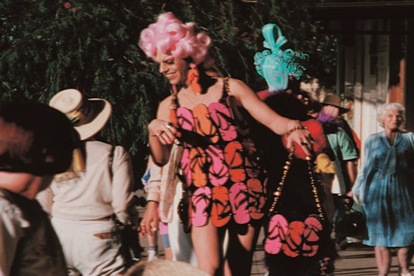 Best known for pitting lamé and sequins against the red dust of the outback, Stephan Elliot’s drag extravaganza not only redefined the road trip, it also includes a delicious street walk that turns Akubra-hatted heads in Broken Hill. Tired of all those hours on the bus, Tick (Hugo Weaving), Adam (Guy Pearce) and Bernadette (Terence Stamp) step out in strappy sandals, candy-coloured wigs and – in Tick’s case – a flip-flop dress with matching earrings and handbag. Weaving later described the dress as “almost impossible to wear”, but summed up the art of costume design when he acknowledged “it tells you a great deal about the character and the lengths that a drag queen will go to to get noticed”.